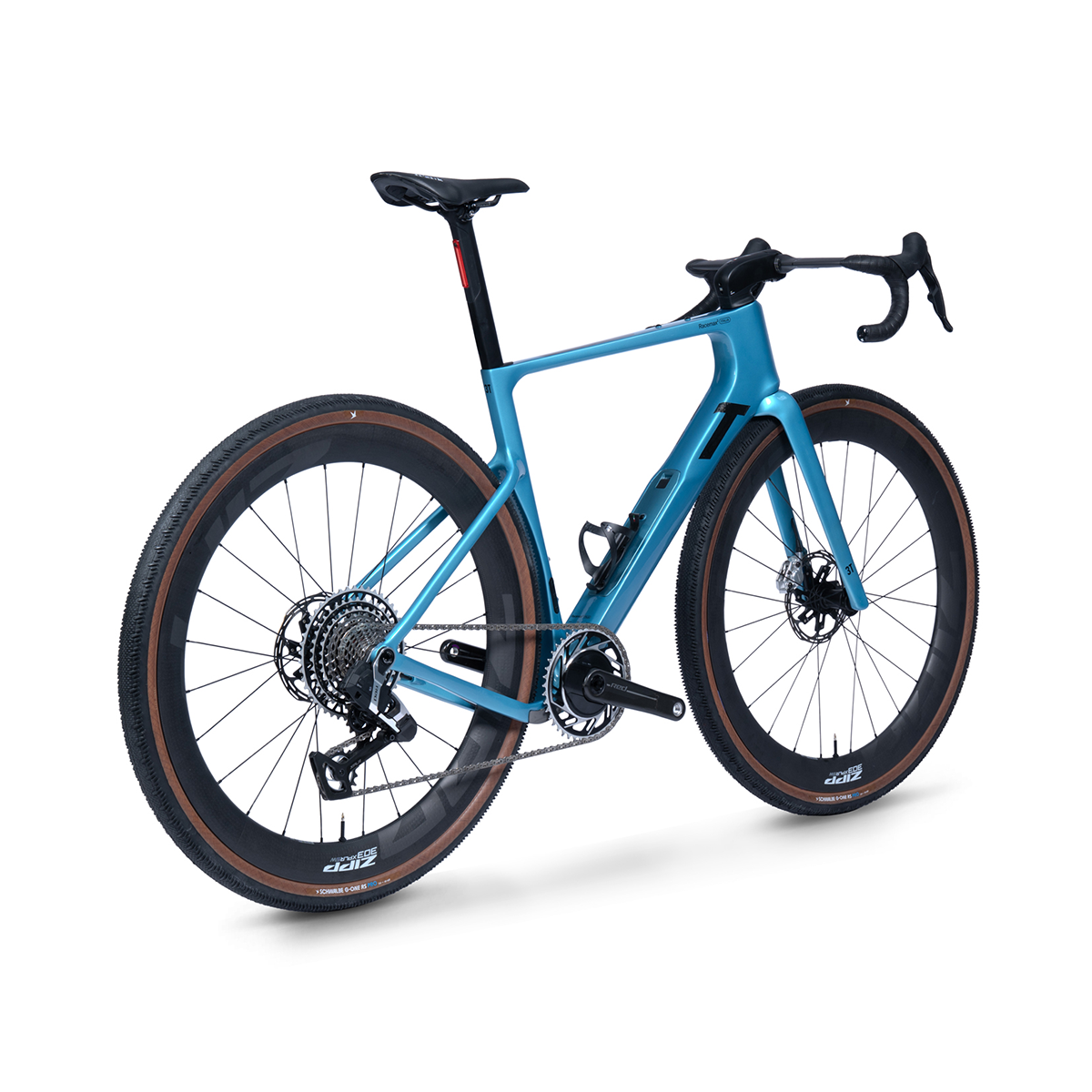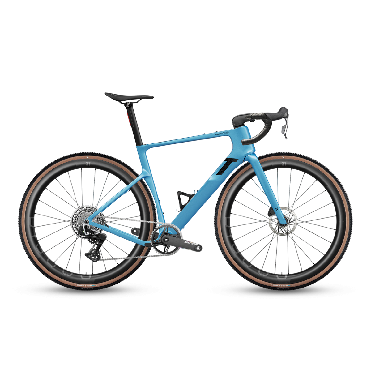 3T schuf mit dem Racemax das erste Aero Race Gravel Bike. Irgendwann im letzten Jahrzehnt. Für 2026 wurde das Topmodell, das Racemax Italia zum Racemax² Italia weiterentwickelt. Neue Geometrie heisst bessere Balance zwischen Leistung und Komfort, weniger Ermüdung auf langen Strecken. Ein steilerer Lenkwinkel und kürzere Kettenstreben von 420mm Länge verbessern die Agilität, was in immer technischeren Gravel Bike-Rennen von großer Bedeutung ist. Dazu gibt ein tieferes Tretlager mehr Stabilität und Sicherheit. Für bessere Aerodynamik wurde das Unterrohr aufgrund der größeren Reifenfreiheit auf 75mm verbreitert und die Luftströmung optimiert. Die Schrauben für den Bremssattel sind vor dem Wind mit einer Abdeckung verborgen, das Steuerrohr wurde schmäler und bekam eine Nase. Ergebnis: Trotz mehr Reifenfreiheit wurde das Racemax² Italia um 1,5% leistungseffizienter als das Vorgängermodell. Also: Gib Gas!